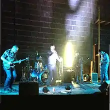 The Multi-Purpose Solution is a five-piece rock band from Jersey City, New Jersey that formed in 1999. Guitarist Stephen Mejias and vocalist Peter Prochilo (Jim Teacher) met while studying abroad in England, both college seniors attending Fairleigh Dickinson University. Upon returning to the United States, the two enlisted Prochilo's brother Dan Prochilo and friend Dave Caldwell. The Multi-Purpose Solution were a four-piece band for several years before recruiting their friend Alan Ten Hoeve, a bass-player.[1] According to Mejias, shortly after Hoeve joined they began focusing more on songwriting, practicing at an all-purpose space in Jersey City and playing local venues, such as Hoboken's Maxwell's.[1][2] Their music is characterized by guttural vocals and piercing guitars.[3] Between 2001 and 2005 the Multi-Purpose Solution released a few EPs and two full-length albums and they appeared on the Weird NJ compilation Local Heroes, Villains, and Artists in 2004.[4] They released How Can a Man Be Tougher Than the World? in 2005.[5] Later that year, the members took a hiatus, playing their last show for five years in 2006.[1][4]