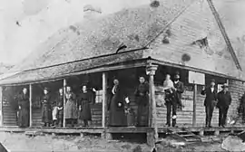 The widow of John Benton Wild, Emmeline Wild, donated 100 acres (0.40 km2) of "Vanderville" for the establishment of a village in 1858.[9] This area was located on the banks of Werriberri Creek (a Tharawal name for the song of the willie wagtail). Flooding caused the settlement to move to higher ground. When a post office was opened later in 1858 the village was officially recognised as "The Oaks". Lots were advertised for sale in Sydney and by 1860 there were some 8 houses, 2 blacksmith shops, a wine saloon, school and the hotel in the village. The Oaks Hotel was in operation by 1863 and closed approximately 100 years later. It then became a sanatorium for people suffering Tuberculosis. It was thought that the relative high altitude was conducive to the health of the patients.[3] The original Church of England, St. Mathews, was now too far from the village and so St. Luke's was built in 1892 on a town allotment to service the new village.[9]