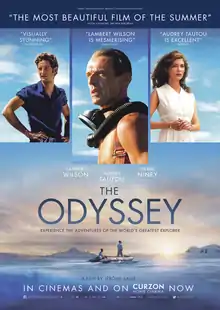 The Odyssey (French title: L'Odyssée) is a 2016 French-Belgian biographical adventure film directed by Jérôme Salle and written by Salle and Laurent Turner, based on the non-fiction book Capitaine de La Calypso by Albert Falco and Yves Paccalet. The film stars Lambert Wilson, Pierre Niney, and Audrey Tautou.[3][4][5][6]