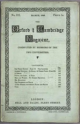 - ↑ "The Oxford and Cambridge Magazine". The Oxford and Cambridge Magazine. Bell and Daldy. 1 (1). January 1856. The edition in Internet Archive does not have the covers.