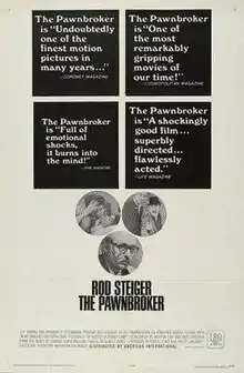 The Pawnbroker is a 1964 American drama film directed by Sidney Lumet, starring Rod Steiger, Geraldine Fitzgerald, Brock Peters, Jaime Sánchez and Morgan Freeman in his feature film debut. The screenplay was an adaptation by Morton S. Fine and David Friedkin from the novel of the same name by Edward Lewis Wallant.