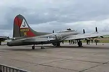 She was featured as the fictional B-17F aircraft Mother and Country in the 1990 film Memphis Belle, she was painted on one side to resemble the older B-17F. She is credited in the 2012 film Red Tails. The Pink Lady was based at Paris–Orly Airport, France, just to the south of Paris, until its hangar was listed for demolition. In October 2006, she was stored for winter 2006–2007 in a hangar in Saint Yan, (Saône et Loire), France. Afterwards, she was based at Melun Villaroche (LFPM), south-east of Paris, where some Dassault (Mirage, Mystère or Balzac) aircraft made their first flights. She has made some appearances, like at Melun in 2008 or the Paris Air Show in 2009. Her last flight from Melun Villaroche (her last base before retirement) was to Cerny-La Ferté Alais (LFFQ) (the airfield of Amicale Jean-Baptiste Salis) in March 2010.[2]