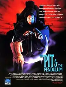 The Pit and the Pendulum (released on DVD in the United States as The Inquisitor) is a 1991 American horror film directed by Stuart Gordon and based on the 1842 short story by Edgar Allan Poe. The film is an amalgamation of the aforementioned story with Poe's "The Cask of Amontillado", and it also appropriates the anecdote of "The Sword of Damocles", reassigning it to the character of Torquemada.