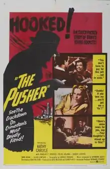 The Pusher is a 1960 American crime film directed and co-produced by Gene Milford and written by Harold Robbins. The film stars Kathy Carlyle, Robert Lansing, Felice Orlandi, Douglas Rodgers and Sloan Simpson. The film was released in February 1960, by United Artists.[1][2]