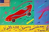 The tour's elaborate and colourful stage was the work of Japanese designer Kazuhide Yamazaki.[5] "Most concerts that took place outdoors at the time were played during the day," recalled Jagger, "probably because it was cheaper, I don't know. So we had the bright, bright primary colours... and we had these enormous images of a guitar, a car and a record—an Americana idea—which worked very well for afternoon shows."[5]