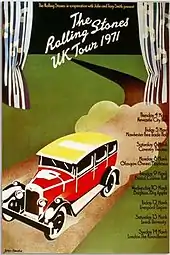 - 1 2 The concert on 26 March 1971 at the Marquee Club was the Rolling Stones final concert in England in 1971. It was not officially part of the tour, but the Melody Maker said that it was performed "before a small but elite audience that included Eric Clapton, Jimmy Page, Ric Grech, and Andrew Oldham".[3] It was also the first time that the tongue and lips logo was ever used, when it appeared on VIP passes to the concert.[4]