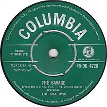 "The Savage" is an instrumental track by British group the Shadows, released as a single in November 1961. It peaked at number 10 on the UK Singles Chart.[2]