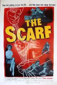 The Scarf is a 1951 American film noir directed by Ewald André Dupont and starring John Ireland, Mercedes McCambridge, James Barton, and Emlyn Williams.[1] The screenplay concerns a man who escapes from an insane asylum and tries to convince a crusty hermit, a drifting saloon singer, and himself that he is not a murderer.