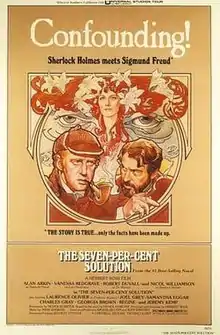 The Seven-Per-Cent Solution is a 1976 Oscar-nominated British-American mystery film directed by Herbert Ross and written by Nicholas Meyer. It is based on Meyer's 1974 novel of the same name and stars Nicol Williamson, Robert Duvall, Alan Arkin, and Laurence Olivier.[2]
