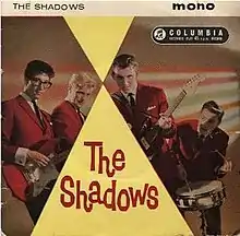The Shadows is an EP by The Shadows, released in January 1961. The EP is a 7-inch vinyl record and released in mono with the catalogue number Columbia SEG 8061 and in stereo with the catalogue number Columbia ESG 7834.[1][2] The Shadows was the UK number-one EP for 20 weeks, having two separate stints at the top of the chart from January to June 1961. The cover photograph was taken by Angus McBean. The original picture showed Cliff together with the Shadows, however the layout for the EP was adapted and Cliff was replaced by yellow triangles.