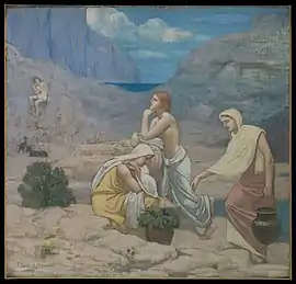 The Shepherd's Song is an oil on canvas painting by French artist Pierre Puvis de Chavannes, from 1891. It depicts shepherds lounging and foraging in an arid landscape. The painting - which was inspired by one of de Chavannes' earlier works - is now in the collection of the Metropolitan Museum of Art, in New York.