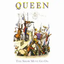 "The Show Must Go On" is a song by British rock band Queen, featured as the twelfth and final track on their 1991 album, Innuendo. It is credited to Queen, but written mainly by Brian May.[4] The song chronicles the effort of frontman Freddie Mercury continuing to perform despite approaching the end of his life, although his diagnosis with HIV/AIDS had not yet been made public in spite of ongoing media speculation claiming that he was seriously ill.[5] When the band recorded the song in 1990, Mercury's condition had deteriorated to the point that May had concerns as to whether he was physically capable of singing it. May recalls; "I said, 'Fred, I don't know if this is going to be possible to sing.' And he went, 'I'll fucking do it, darling'—vodka down—and went in and killed it, completely lacerated that vocal".[6]
