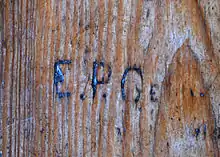 On the second day of battle the Stone House continued to serve as a hospital. Some Union troops also buried their men in the yard of the Stone House. Two members of the 5th New York Volunteer Infantry, Privates Charles E. Brehm, age 21, and Eugene P. Geer, age 17, arrived at the Stone House after being wounded late in the battle, and were taken to an upstairs room.[8] At some point during their stay, both men carved their names into the floorboards of the room they were in. Brehm's carving appears as "Brehm Aug 30", and Geer, unable to complete his last name, left the carving "E.P. Ge." Brehm survived the war and lived until 1909; Geer did not live to see the end of 1862. The carvings can still be seen to this day[5]