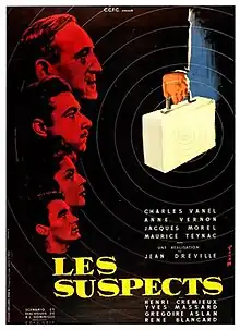 The Suspects (French: Les Suspects) is a 1957 French crime thriller film directed by Jean Dréville and starring Charles Vanel, Anne Vernon and Jacques Morel.[1] [2] It was shot at the Neuilly Studios in Paris and on location around the city. Footage was also shot off the coast of Monaco. The film's sets were designed by the art director Maurice Colasson.