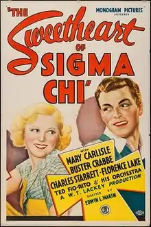 The Sweetheart of Sigma Chi is a 1933 American pre-Code comedy film directed by Edwin L. Marin and written by Luther Reed and Albert DeMond. The film stars Mary Carlisle, Buster Crabbe, Charles Starrett, Florence Lake, Eddie Tamblyn and Sally Starr. The film was released on October 26, 1933, by Monogram Pictures.[1][2][3]