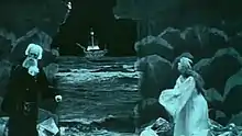 The British Film Institute describes Stow's The Tempest as "Comfortably the most visually imaginative and cinematically adventurous silent British Shakespeare film". Unlike William Kennedy Dickson's 1899 film version of King John and Charles Urban's 1905 film of The Tempest, both of which were simply films of Herbert Beerbohm Tree's stage productions, Stow's film was a condensed version of the entire play set specifically for the camera and tells the backstory (the film's first four scenes are set before the play starts) of how Prospero arrived on the island, his first encounter with Caliban and the discovery of Ariel.[4] Characters such as Duke Antonio are only sketched in while others such as Stephano and Trinculo do not appear at all and Percy Stow may have presumed that his audience would be familiar enough with the story to not require additional detail.[4][5] The Tempest was filmed in the studio and on location.[3][6]