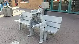 The Traveler is a 7-foot (2.1 m) cast aluminum sculpture by Richard Beyer, installed at the corner of Franklin and Wall in Bend, Oregon. The statue, nicknamed "Art", was installed in 1982 and depicts a man sitting on a bench, with two ducks.[1] It was temporarily removed in December 2020 for repairs.[2] People often take photographs with the man, or place objects in his wallet.[3]