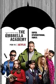- ↑ Umbrella Academy [@UmbrellaAcad] (July 18, 2018). "Super. Messed up. Family. The #UmbrellaAcademy is coming 2019" (Tweet) – via Twitter.