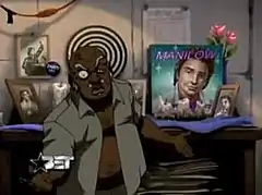 This show and its preceding episode ("The Hunger Strike") were not initially aired on Adult Swim. A Cartoon Network representative stated that BET had not contacted Cartoon Network regarding the episodes.[1] Sony Pictures Television, which produces the series, has not issued a statement on the matter. The episodes are said to specifically attack Reginald Hudlin, BET's president of entertainment, and Debra Lee, president and chief executive officer of BET Holdings (parent company of BET.) Lee is portrayed as Deborah Leevil, a parody of the character Dr. Evil from the Austin Powers movies, and Hudlin is portrayed as Wedgie Rudlin, a "culturally insensitive buffoon coasting on his Ivy League education."[2] In this episode, Leevil is portrayed to be much like Doctor Evil from the Austin Powers movies, by placing her finger near her mouth when excited or emphasizing a statement or using the word "evil." Leevil also speaks in much the same way as Doctor Evil.