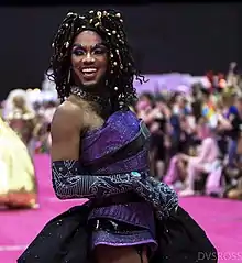 The Vixen is the stage name of Anthony Prince Taylor,[2][3] an American drag performer, best known for competing on the tenth season of RuPaul's Drag Race and placing seventh. Her appearance on the show was notable for raising a conversation around racial dynamics both among her fellow drag queens and in the show’s fandom.[4][5][6][7] She is the founder of Black Girl Magic, a drag show consisting of only African-American queens. In August 2020, she released Commercial Break, her debut album.