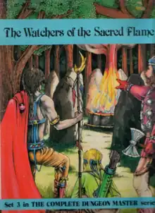 Integrated Games planned a five-part fantasy role-playing adventure series called The Complete Dungeon Master Series. Between 1984 and 1987, Simon Forrest and Basil Barrett wrote four adventures, the third in 1986 being The Watchers of the Sacred Flame. The boxed set contained a 32-page book, two 12-page books, a cardstock screen, 23 cardstock map sheets, and five player handout screens, with artwork by Judith Hickling.[2]