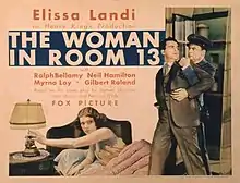 The Woman in Room 13 is a 1932 American pre-Code mystery film directed by Henry King and adapted by Guy Bolton from the play of the same name. The film stars Elissa Landi, Ralph Bellamy, Neil Hamilton, Myrna Loy, Gilbert Roland and Walter Walker. The film was released on May 15, 1932, by Fox Film Corporation.