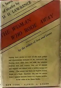 "The Woman who Rode Away" is a short story by D. H. Lawrence. It was written in New Mexico during the summer of 1924 and first published in The Dial in two installments in 1925. It later became the title story for a collection of Lawrence's shorter fictional works issued in 1978 by Martin Secker in the UK and Alfred A. Knopf in the US. The cave that features at the end of the story was inspired by a visit to a cave on Lucero Peak which overlooks the town of Arroyo Seco, New Mexico.