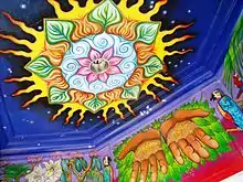 Painted by seven women artists including Juana Alicia, Miranda Bergman, Edythe Boone, Susan Kelk Cervantes (cofounder of Precita Eyes Muralists Association), Meera Desai, Yvonne Littleton and Irene Perez along with their helpers and volunteers in 1994, the mural titled MaestraPeace covers both the outside of The Women's Building as well as the interior entrance hall and stairway.[16] It features images of feminine icons from history and fiction, and the names of more than 600 women written in calligraphy.[17] According to the San Francisco Women's Center, "This spectacular mural is a culmination of a multi-cultural, multi-generation collaboration of seven women artists, and a colorful work of art that sings to our community."[2]