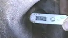 Body temperature is regularly higher than in any other cattle disease. Fever from 41 to 42 °C (106 to 108 °F) is common in acute stages. Later on (day 5 to day 10 from the clinical onset), temperature will lower to a normal range (38.0–39.5 °C (100.4–103.1 °F)), but the disease will continue to progress, despite a possible apparent clinical improvement (appetite comes back). Afterwards, from D10 to D15, there is a downfall stage, with hypothermia (37 to 38 °C (99 to 100 °F)), anemia, jaundice, and heart failure. Such animals rarely recover, even with intensive treatment.