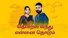 Thendral Vandhu Ennai Thodum (transl. The Breeze Will Come and Touch Me) is a 2021-2023 Indian Tamil-language television series that aried on Star Vijay and streams on Disney+ Hotstar.[1][2][3] It is the remake of the television series Khelaghor, which is aired on Star Jalsha,[4] however the plot eventually deviates. It premiered on 16 August 2021 and ended on 11 November 2023 with 686 episodes.[5] The show replaced Anbudan Kushi time slot and was replaced by Nee Naan Kaadhal.