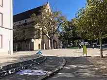 The former vineyard area to the west of the Theodorskirche was purchased in 1779 by council member Remigius Merian. After the last grape harvest, it was prepared for the long-needed extension of the regular churchyard; the first funeral took place on 5 October 1779. The new cemetery was enclosed by a wall and was named “Merianscher Totenacker” (Merian's Graveyard) after its former owner. Members of the lower social class were mainly buried there. However, as its capacity was quickly exhausted, two more areas were used as cemeteries, the “Kleeacker” in 1805 and the “Mättelein” in 1831; these too did not prove to be sustainable. In 1832, a new cemetery was established outside the city near the Messeplatz for the rapidly growing population of Basel. The Merianscher Totenacker near the Theodorskirche was closed as of 1 May 1833.[4] The Theodor schoolhouse, built in 1855/56, stands on the site of the former graveyard.[5]
