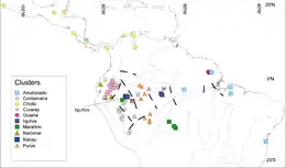 ![]() Map showing genetic clusters of Theobroma cacao | |