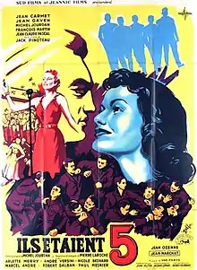 They Were Five (French: Ils étaient cinq) is a 1952 French drama film directed by Jack Pinoteau and starring Marcel André, Jean Carmet and Jean Gaven.[1] It was shot at the Boulogne Studios in Paris. The film's sets were designed by the art director Jacques Colombier.