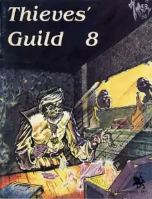 Gamelords first published Thieves' Guild in 1980. Over the next four years, they released nine more supplements, including Thieves' Guild 8 in 1983, a 32-page softcover book written by Kerry Lloyd, Alfred Hipkins, and Janet Trautvetter, with artwork by Becky Harding, Denis Loubet, Wallace Miller, Larry Shade, Hannah M. G. Shapero, John Statema, and Janet Trautvetter.[2]