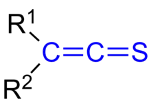 In organic chemistry, thioketenes are organosulfur compounds analogous to ketenes with the general formula R2C=C=S, where R is alkyl or aryl. The parent thioketene (ethenthione) is has the formula CH2=C=S. It is the simplest thioketene. Thioketene is stable as a gas, but like most thioketenes, it polymerizes upon condensation.[1]