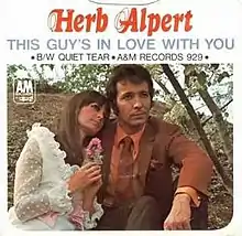 "This Guy's in Love with You" is a hit song written by Burt Bacharach and Hal David and released by Herb Alpert in May, 1968. Although known primarily for his trumpet playing as the leader of the Tijuana Brass, Alpert sang lead vocals on this solo recording, which was arranged by Bacharach. An earlier recording of the song by British singer Danny Williams with different lyrics, titled "That Guy's in Love", appeared on Williams' 1968 self-titled album.[1]