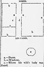 In January 1877, Williamson married 57-year-old Susan Kerk in Centralia, Missouri.[3] The couple were happy together, but their poverty forced them to travel around Missouri, selling wares to whoever might be interested. The following year, they came across a Dr. Middleton, whom directed them to go to Sedalia, where the local mayor, Col. Crawford, would likely find suitable work for them.[5] By the fall of 1889, the couple were living in a log cabin six miles outside Sedalia, but they abandoned it some time in September or October. Williamson moved to the city and worked various odd jobs, but strangely, his wife was nowhere to be found. When queried about her whereabouts, Thomas replied that she had gone to visit some relatives in Calhoun, Illinois, and would return shortly.[5] When she didn't, Williamson claimed that she had died from renal colic while in Illinois, and being too poor to have her remains transported, he would have her buried there. Although some were suspicious of his claims, nobody looked further into the incident and it was soon forgotten.[5] The only one to take notice was farmer Dan Clossier, the new owner of the log cabin, whom was informed by Williamson not to dig out a certain location on the premises, claiming that "he had planted parsnip there".[6] At some point, Williamson became a member of the local Salvation Army branch, where he was sheltered.[7] As he was jobless at the time, he sought out work around the town, and would eventually find employment as a farmhand on the Moore farm, which was run by 59-year-old Jefferson "Jeff" Moore and his 29-year-old son, Charles.