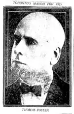 Thomas Foster (July 24, 1852 December 10, 1945) was a Canadian businessman and politician who served as Mayor of Toronto from 1925 to 1927.