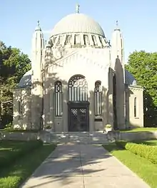 He was a great traveler and on one of his trips he was inspired by the Taj Mahal. In 1935 and 1936, he had a memorial temple constructed on a hill between Leaskdale and Uxbridge, Ontario, for his family at a cost of $200,000. The temple was designed by Foster with architects H.H. Madill and James H. Craig[2] and inspired by Mughal architecture and Byzantine architecture.