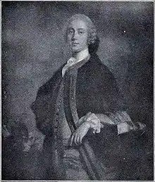 Thomas Grenville was born on 4 April 1719, the seventh son of the politician Richard Grenville.[1][2] His older brothers, George and Richard, also became distinguished politicians.[2] George served as Prime Minister between 1763 and 1765. Thomas was brother-in-law to William Pitt, 1st Earl of Chatham. He was politically close to both men as all were Cobham Cubs of the Patriot Whig persuasion, a grouping led by his uncle Lord Cobham.