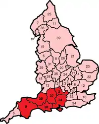 | Mid Wessex | Wiltshire | 37 |