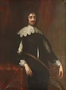 In April 1640, Jermyn was elected Member of Parliament for Corfe Castle together with his brother Henry Jermyn in the Short Parliament, and in November 1640, the brothers were elected MPs for Bury St Edmunds in the Long Parliament.[4] By 1640, Jermyn was both a justice of the peace and a deputy lieutenant for Suffolk.[1] As the civil approached in 1642, Jermyn sided with King Charles and in September 1643 the Roundheads officially discharged him from parliament.[5] Jermyn attended the royalist Oxford Parliament in 1644. In the following year he succeeded to his father's estate, which was ostensibly worth £1,980 a year. However, all of his lands were mortgaged, and he went into exile after the eventual royalist defeat in the war. In January 1651, he returned to Suffolk where he lived quietly under The Protectorate until his death in November 1659.[1]
