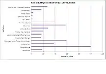 The earliest census data regarding industries and professions in Thurlaston is the 1831 Census, with agriculture being the chief industry with 53% of occupants being involved; with handcraft and manufacturing making up the remainder. However, as of 1881's Census a more detailed classification of resident occupation was carried out, revealing 90% of industry being directly related to agriculture, with an entirely male workforce. The only recorded work of women at the time was classed as "Domestic Services".[6] Industry in the present day has declined significantly in the agricultural area, with just 4% of the working population being involved. The prominent occupations now are the repair and trade of motor vehicles, and the manufacturing industry, which over a quarter of the entire working population is involved in.[7]