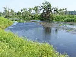 The Tiasmyn (Ukrainian: Тясмин) is a right tributary of the Dnieper River in Ukraine. It is 161 kilometres (100 mi) long, and has a drainage basin of 4,540 square kilometres (1,750 sq mi).[1] The Tiasmyn originates in the north central part of the Dnieper hills in the central Ukrainian province of Kirovohrad. From there it flows through the Cherkasy Oblast, where it finally flows into the Kremenchuk Reservoir. The river forms a U-turn (180°) in its central run. Not counting the river's sharp turn, the river's source and its delta are located only 33 km (21 mi) away from each other.