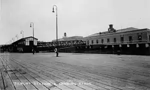 Tilbury Riverside railway station is a closed railway station located in the town of Tilbury in the borough and unitary authority of Thurrock in Essex, England, south of a triangular junction on the railway between Tilbury Town and East Tilbury. The station was 22 miles 46 chains (36.33 km) down the line from London Fenchurch Street station via Rainham.[1]