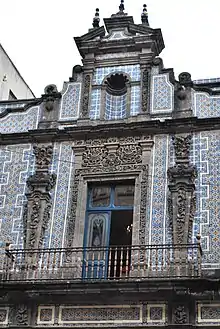 During the Safavid period, mosaic ornaments were often replaced by a haft rang (seven colors) technique. Pictures were painted on plain rectangle tiles, glazed and fired afterwards. Besides economic reasons, the seven colors method gave more freedom to artists and was less time-consuming. It was popular until the Qajar period, when the palette of colors was extended by yellow and orange.[6] The seven colors of Haft Rang tiles were usually black, white, ultramarine, turquoise, red, yellow and fawn.