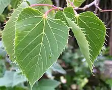 Tilia henryana Szyszyl., commonly known as Henry's lime, was introduced to the West from China by Ernest Wilson in 1901. The tree is native to the provinces of Anhui, Henan, Hubei, Hunan, Jiangsu, Jiangxi, Shaanxi, and Zhejiang,[1] and was named for the Irish plantsman and sinologist Augustine Henry, who discovered it in 1888.