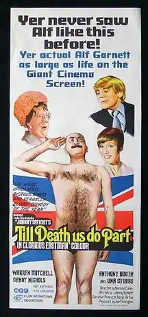 Till Death Us Do Part is a 1968 British comedy film directed by Norman Cohen, written by Johnny Speight, and starring Warren Mitchell and Dandy Nichols. It was based on the BBC television series of the same name. Speight was the creator of the television version. The film was considered successful enough at the box office that a sequel, The Alf Garnett Saga, followed in 1972.[2]