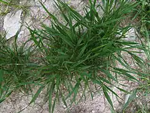 A tiller is a shoot that arises from the base of a grass plant. The term refers to all shoots that grow after the initial parent shoot grows from a seed.[1][2] Tillers are segmented, each segment possessing its own two-part leaf. They are involved in vegetative propagation and, in some cases, also seed production.[3]