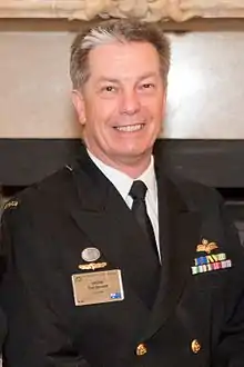 Vice Admiral Timothy William Barrett, AO, CSC (born 8 January 1959)[1] is a retired senior officer in the Royal Australian Navy. Barrett served as Commander Australian Fleet from 2011 to 2014, before being appointed Chief of Navy in June 2014. He retired in July 2018 after four years as navy chief and 42 years in the navy.[2][3]